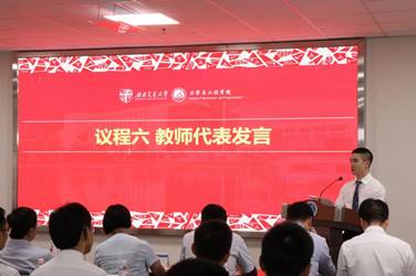 工程力学2021-02班导师刘俊杰作为教师代表发言。刘俊杰老师首先向新生们强调了心态调整的重要性,在学习过程中遇到困难要付诸行动,及时发现问题,学习状态,才有可能走出困境。其次,刘俊杰老师提到了包容,包容他人以及他事,思想上要逐渐走向成熟。最后,刘俊杰老师以“严谨治学,严格要求”的双严传统为结,提出了未来对自己的要求并祝愿新生们能够在未来学有所成。