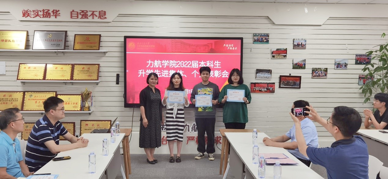 接着,学院领导为获奖集体和个人颁发了奖状。工力2018-03班、飞行2018-01班、工力2018-01班荣获“升学先进班级”奖,T041030、T041033、T041025等13个宿舍荣获“升学先进宿舍”奖,喻勇老师、刘宇杰老师、李鹏老师荣获“优秀班导师”奖。