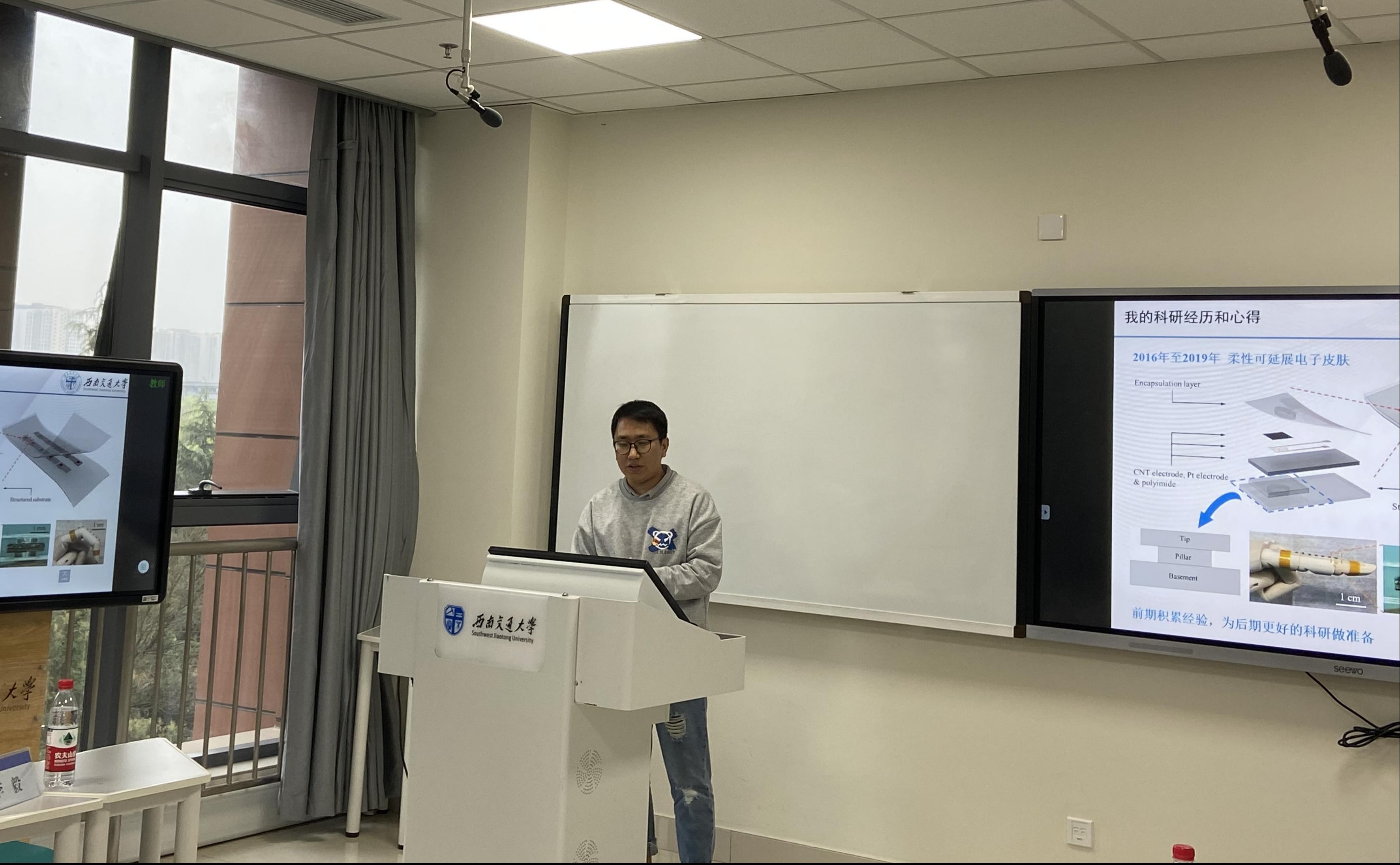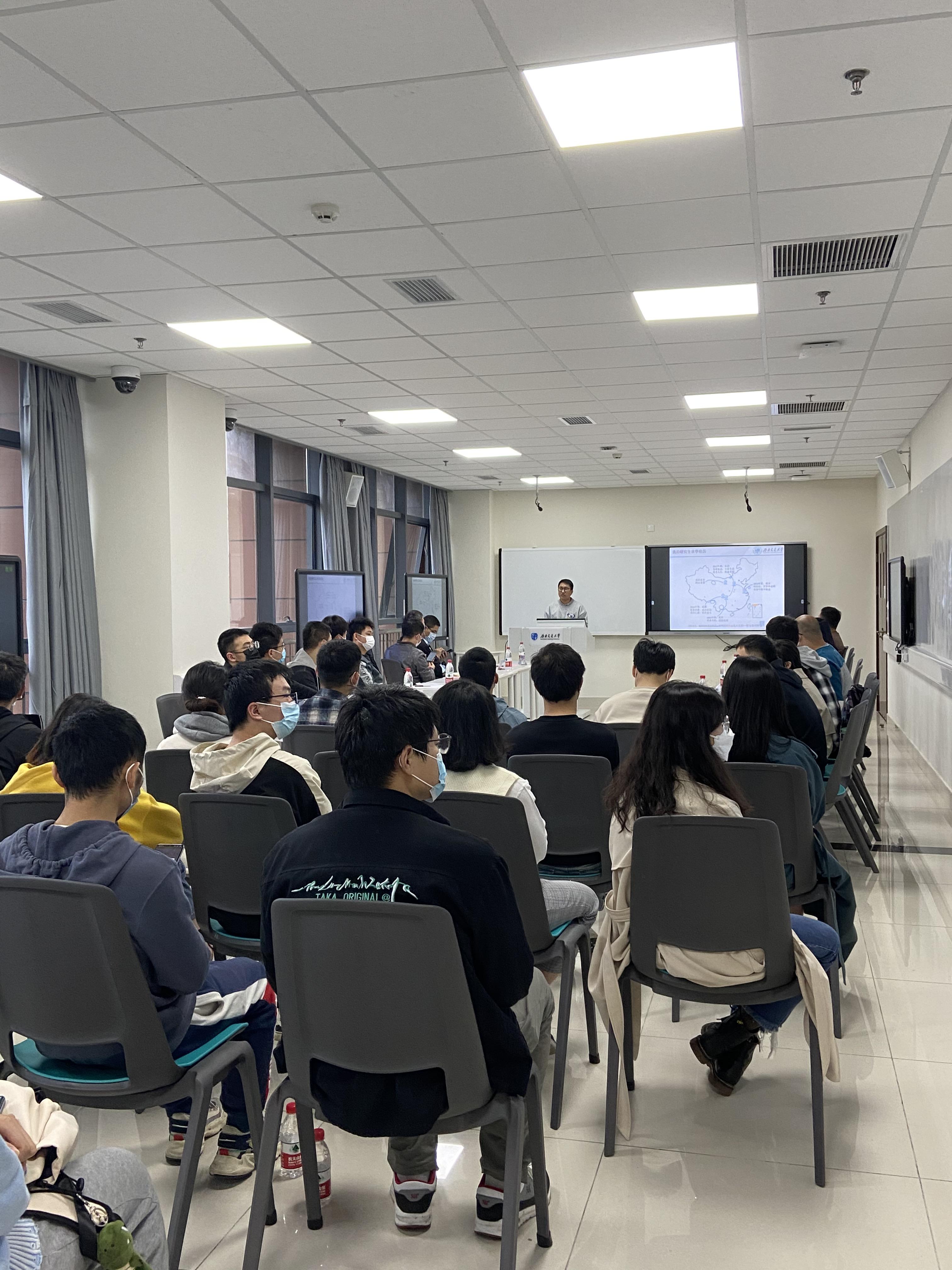 接着,赵晋生以“在科研和生活中的一点想法”为主题,从自己的求学之路讲起,分享了自己的科研心得。他指出“科研中提出问题,比解决问题更难”,他以曾经接连三次实验失败仍不放弃,最后终于发表了高水平的论文来诠释坚持的力量,鼓励大家做科研要求质量,而非只求数量。最后,他提到了自己如何平衡学习与生活,并希望同学们在科研学习中都可以有良好的心态。