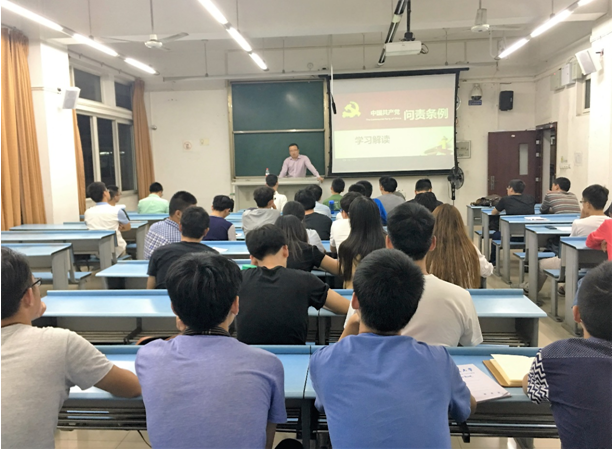 2016928晚,力学与工程学院本科生党支部学习《中国共产党问责条例》在X2534教室进行,全体本科生党员参加了学习,学习由学院党委委员、纪委书记、学工组组长张军琪老师主持。