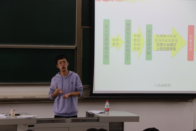 最后,胡持老师向同学们介绍了入党的基本流程、注意事项以及入党材料书写的正确格式,鼓励想入党的同学积极向党组织靠拢。