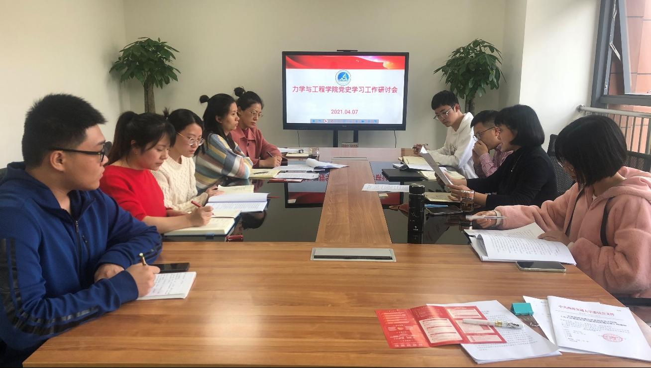 4月7日下午16:00在犀浦校区3号楼30227会议室,力学与工程学院召开了党史学习教育工作研讨会议。本次会议由学院党委栗民书记主持,党委孔祥彬副书记、学院组织员刘青、学院教师服务中心朱曦和全体学生工作组辅导员老师参加。