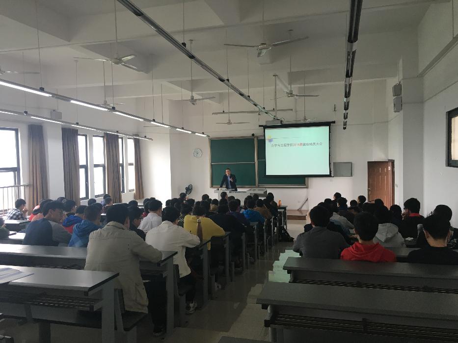 2017年4月6日下午,学院在犀浦校区X9541教室召开2018届毕业生就业工作动员大会。出席本次会议的有学院党委副书记张军琪老师、学院副院长李映辉教授、2018届毕业生就业工作负责人杨婧老师和2014级全体本科生。