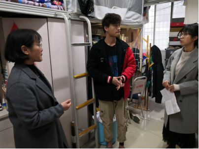 临近期末,为进一步加强学生宿舍园区安全工作,11月28日,在学院党委书记栗民老师带领下,本科生辅导员老师杨婧、张容华、胡持、向金兰、周子涵及研究生辅导员老师张英蓉对学院学生宿舍进行了安全检查,特别对宿舍卫生、存放使用违章电器、乱接空调专用电源、宿舍内各充电设备的安全使用等进行了重点检查。