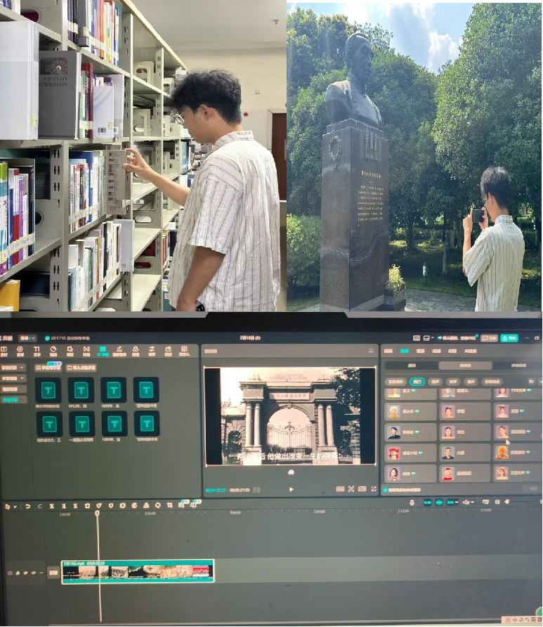 团队前期在西南交大校园内完成了核心素材的采集工作,如在8827太阳集团官网线上校史馆寻找罗忠忱教授的生平事迹;在学校图书馆寻找有关罗教授的书籍,以及对网上检索到的罗教授相关事迹进行验证筛选等。此外,团队成员还通过角色扮演的方式,复刻了有关罗忠忱教授的经典场景,如“罗教授的铁律——一道题必须用两种方法验算”场景;“小数点错一位则整道题都是零分”场景等。