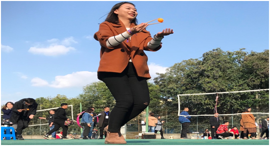 11月的成都,寒风嗖嗖的吹着。但是,同学们看上去却没有一丝凉意,每个人都在赛场上或奋力拼搏或加油打气,呈现出一片热闹的景象。在“七人八足20米跑”的赛场上,同学们跃跃欲试,比赛的哨声吹响时,口号声在操场上跌宕起伏;操场那边“筷子夹乒乓球冲关”更是火爆极了,笑声欢呼声不断,男女同学一齐配合,越过阻碍,奔向胜利;在“呼啦圈过山车”那里,参赛队员们小心翼翼,紧张刺激地完成一次又一次的合作;在拉拉队的欢呼雀跃下,“企鹅漫步”的队员们不甘示弱,通过层层关卡,向着目标跨越……经过一系列的激烈角逐,最终由第一组夺得了冠军,第二组获得亚军,第五组获得季军。