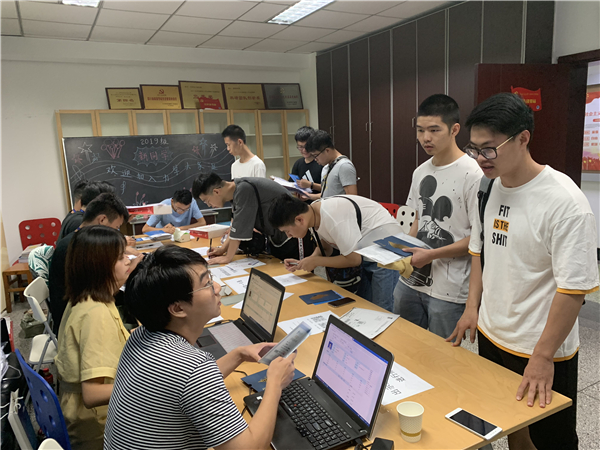 21日,学院于综合楼213办公室开始进行新生报到注册。此次报到共分为五个环节,分别为网上报到注册、领取一卡通、领取宿舍钥匙水卡、学籍确认、领取新生大礼包。研会和学院助管成员在张英蓉老师的带领下将工作开展的有条不紊。期间,校党委常委沈火明在学生工作部部长高平平、副部长李毅及学院院长康国政、副书记孔祥彬、副院长李翔宇陪同下视察学院迎新工作,慰问参与迎新的同学,并与研究生新生亲切交谈。