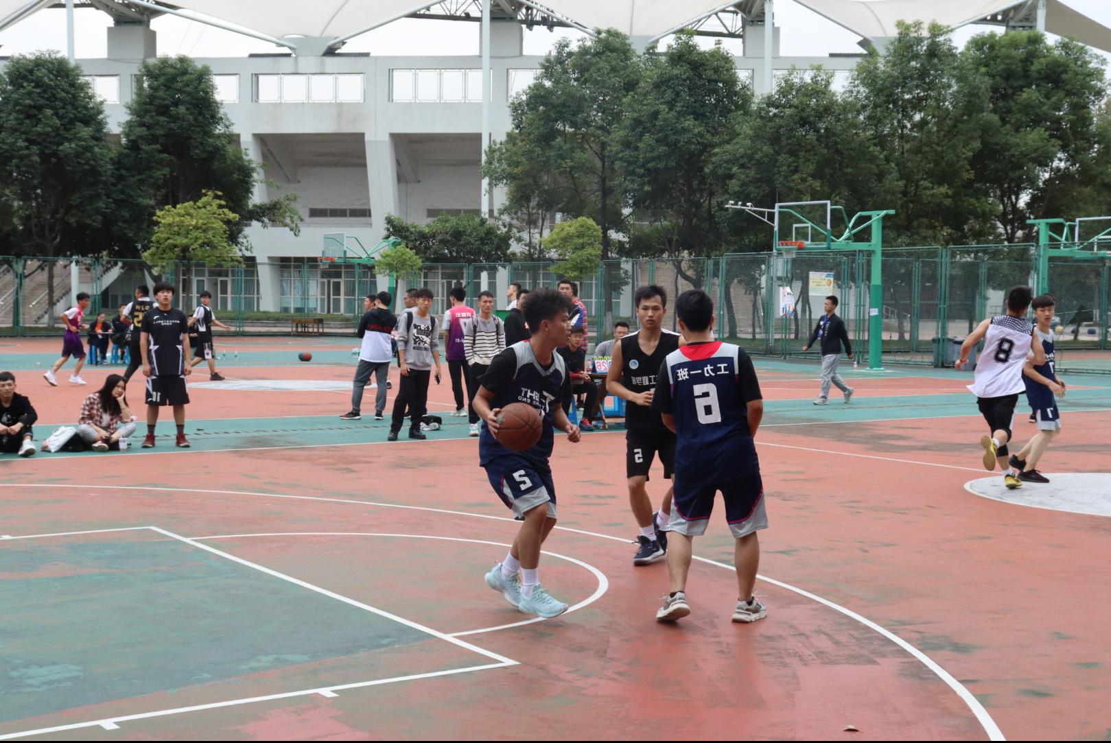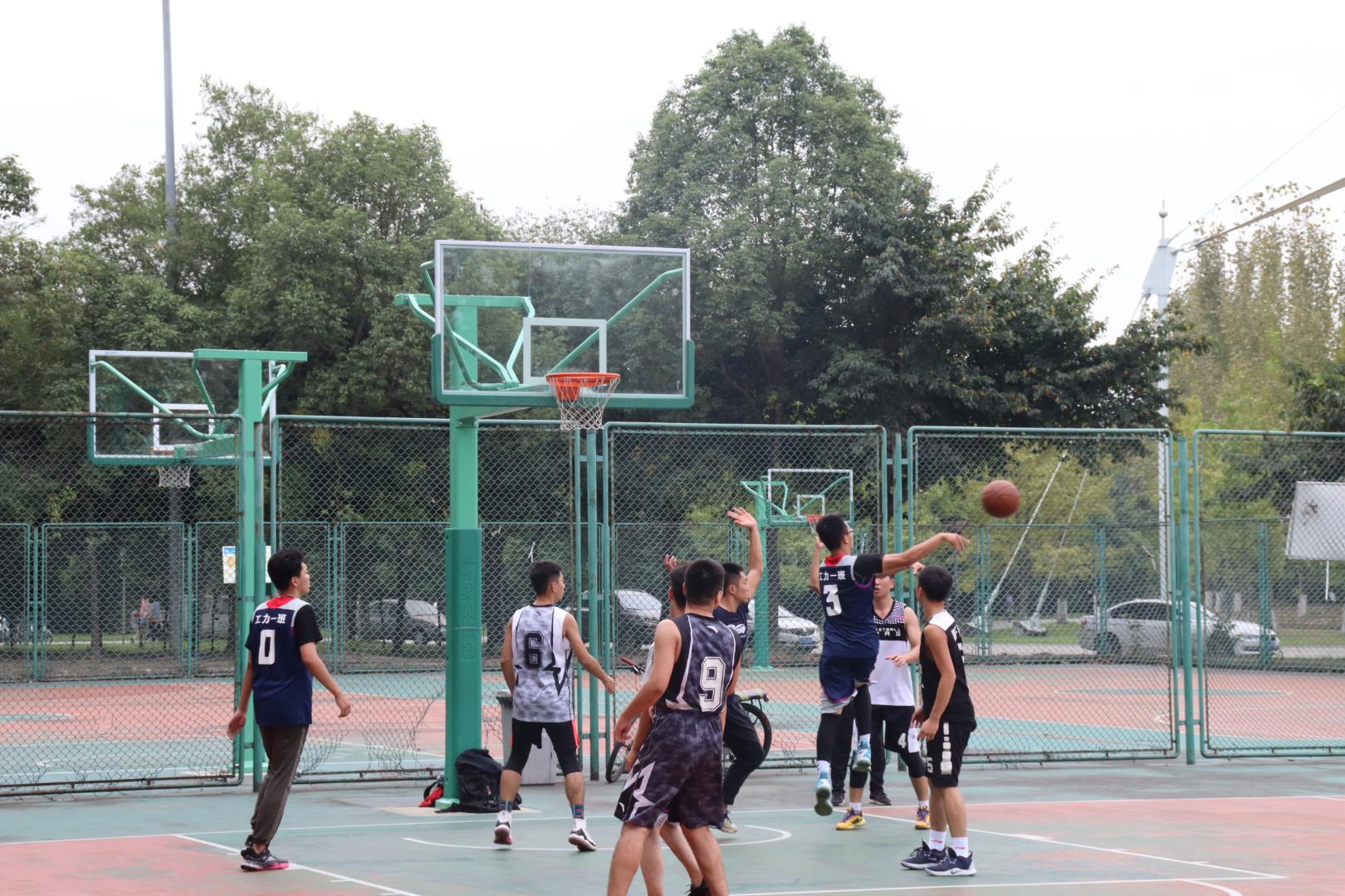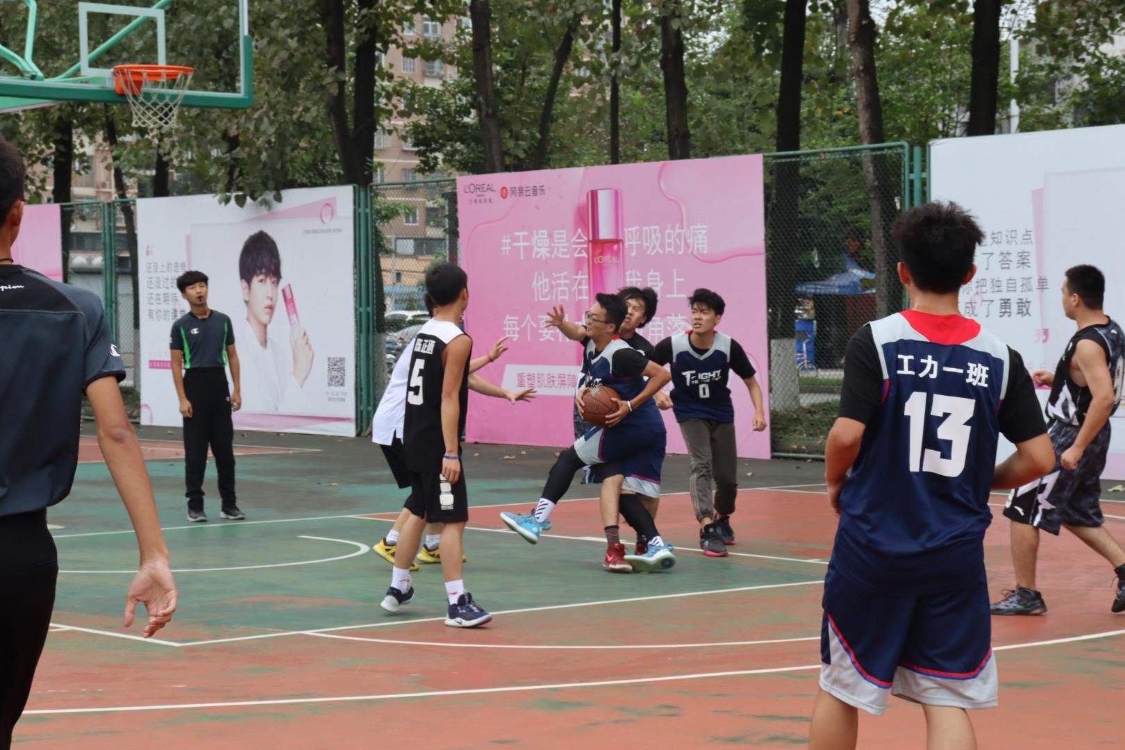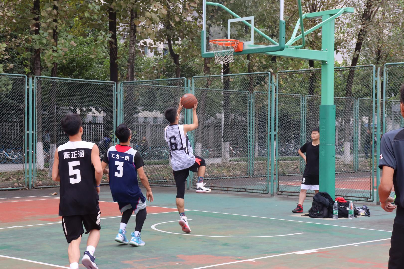 竢实扬华,乳虎试爪,在阵阵秋风中,力院篮球小组赛大一工力一班和大四联队的十道矫健的身影交织成一副最美的画面。