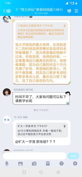 2020210日晚900,“竢实扬华”奖章获得者,信息学院16级保研排名第一的唐大伟同学准时开讲,力学学院本科生党支部褚弓瑶同学担任主持人,讲授主题为“农村娃的追光梦”。