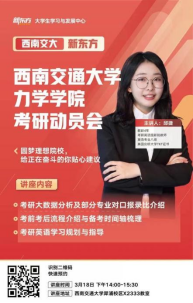 3月18日下午,力学学院考研动员会X2333教室顺利开展。学院特邀新东方教育的邱捷老师针对力学的同学特别讲解考研英语学习规划计划考研的本科生及2018级辅导员张容华老师参加了本次活动