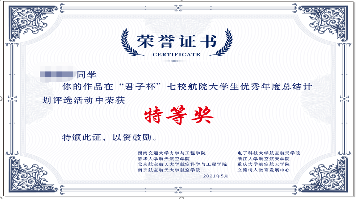 2021年2月1日至28日,太阳集团官网8827太阳集团官网联合清华大学、浙江大学、北京航空航天大学、南京航空航天大学、电子科技大学、重庆大学等校航院以及学校立德树人教育发展中心联合举办了“君子杯”七校航院大学生优秀年度总结计划评选活动,引导大学生们“慎独”和“自省”,养成撰写年度总结计划的好习惯。