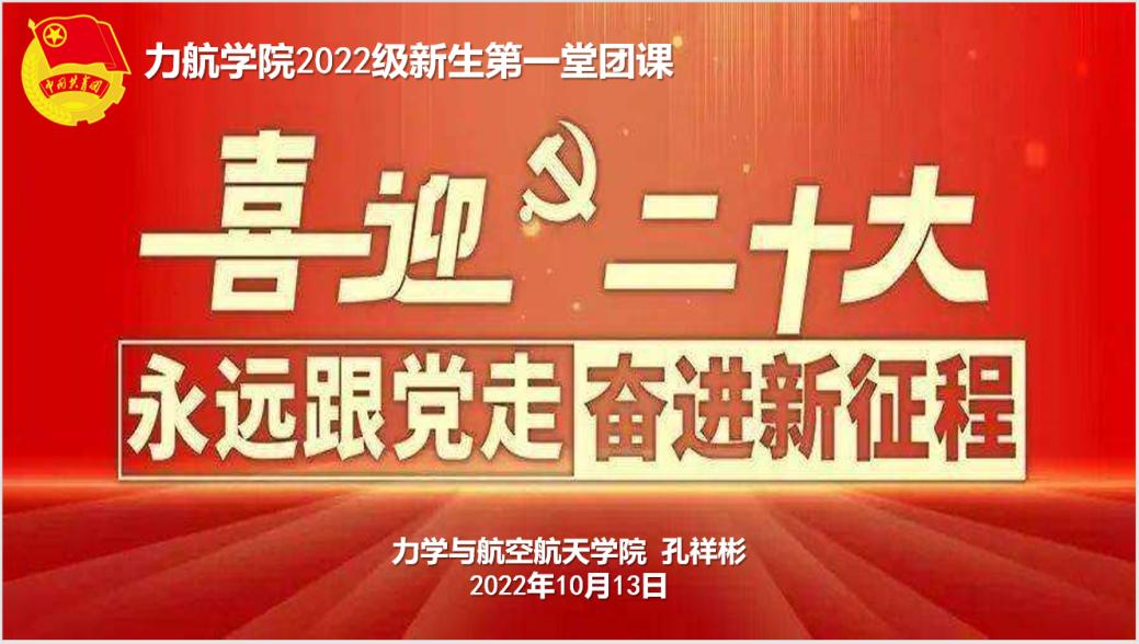 10月13日晚上19:30,8827太阳集团官网在X2321开展了2022级本科生第一堂团课,学校青年讲师团成员、学院党委副书记孔祥彬以“喜迎二十大,永远跟党走,奋进新征程”为主题进行授课。