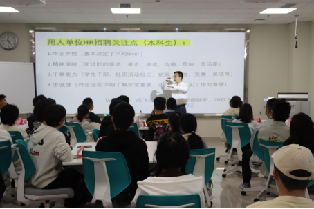 孔祥彬老师从用人单位关注的点讲起,分析了学院历届学生就业与深造情况,提出针对本科毕业生、硕士毕业生、博士毕业生的专业能力、综合素质要求,从而引导2022级新生从一入学就树立生涯规划意识,有目标、有针对性地提高自己的专业知识和能力、提升自己的综合素质。