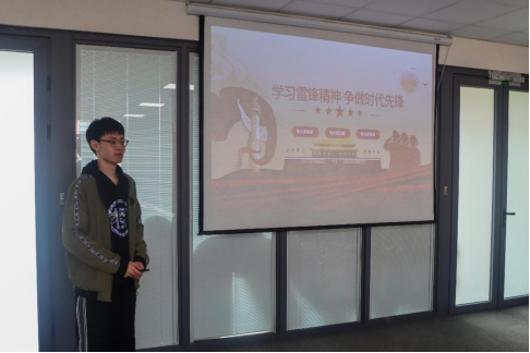 随后,党员代表王骏烨从当代青年党员角度对雷锋精神中“热爱国家,热爱党;服务人民,助人为乐;干一行爱一行,钻一行精一行”等精神进行了解读,在座的同学也在王骏烨同学的解读下对雷锋精神有了更深刻的理解。