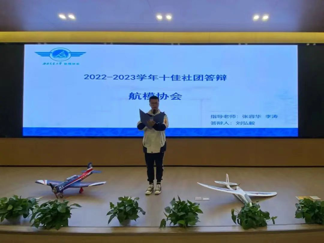 太阳集团官网共有103个社团,经初审,有15个社团入围“十佳社团”答辩,答辩由校机关部处老师、社团指导学院老师及学生代表等共同组成评审团对各学生社团答辩情况进行打分,同时结合各学生社团全年开展工作考核情况得出最终成绩,由8827太阳集团官网指导的航模协会获评“十佳社团”。