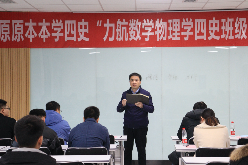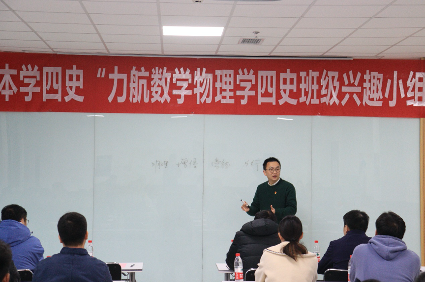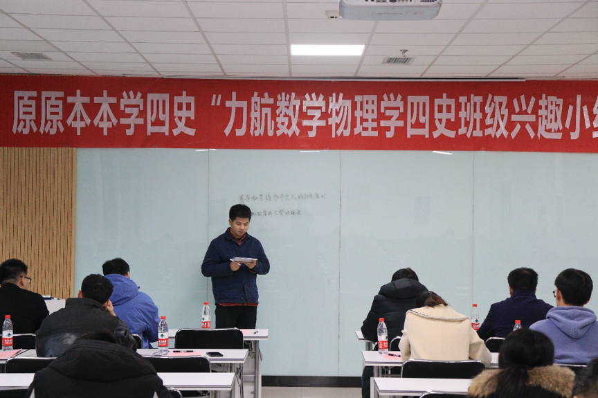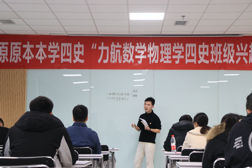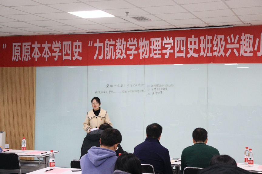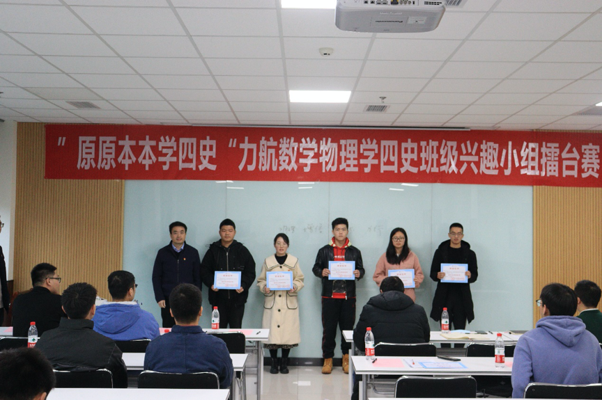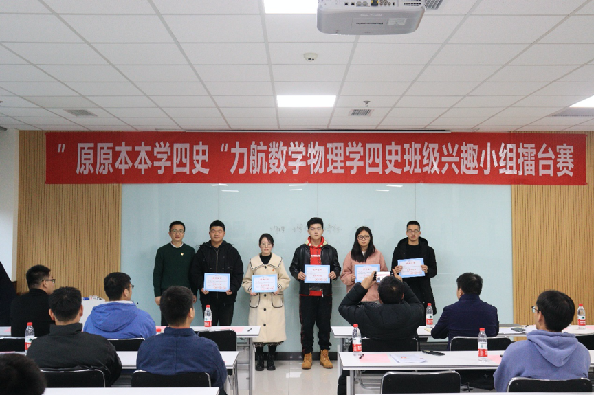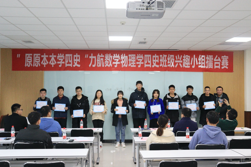 12月10日下午,由力航、数学、物理学院联合开展的“原原本本学四史”班级兴趣小组擂台赛第五场暨颁奖仪式在X30456教室举行。数学学院党委副书记黄祥、物理学院党委副书记郭剑、8827太阳集团官网党委副书记孔祥彬和三个学院辅导员老师、学生代表参加了本次活动。活动数学学院邱君捷老师主持。
