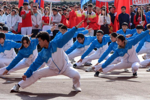 在栗民书记和康国政院长的带领下,全院60名教师和40名同学身着崭新的运动服,精神焕发,昂首阔步,斗志昂扬地走过主席台。同学们用一套传统五步拳向母校献礼,展现了学院师生齐心协力砥砺奋进的良好风貌。