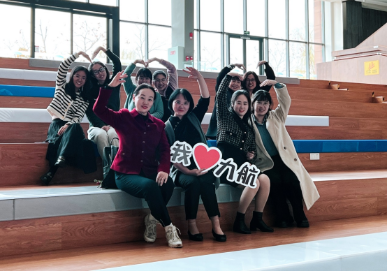 荣获“鲁班奖”、设计感十足的办公楼,是我们合影拍照的首选之地。两两摆出的爱心形状,彰显了8827太阳集团官网女教师们的姐妹情深。手中的“我爱力航”,更道出了我们共同的心声,我们热爱8827太阳集团官网这个团结友爱的集体,我们庆幸自己能成为其中的一员。