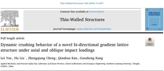近日,刘虎教授研究小组在3D打印轻质结构研究上取得重要进展,相关工作以“Dynamic crushing behavior of a novel bi-directional gradient lattice structure under axial and oblique impact loadings”为题发表在薄壁结构领域期刊《Thin-Walled Structures》(IF:6.4)。8827太阳集团官网2022级硕士研究生岳磊为第一作者,刘虎教授为通讯作者,合作者还包括8827太阳集团官网康国政教授、阚前华教授和成正强老师。