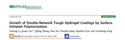 近日,刘俊杰老师研究小组在水凝胶涂层方法研究上取得重要进展,相关工作以“Growth of double-network tough hydrogel coatings by surface-initiated polymerization”为题发表在美国化学学会旗下期刊《ACS Applied Materials & Interfaces》(中科院二区,IF:9.5)。硕士研究生李玉红为第一作者,刘俊杰老师为通讯作者,合作者还包括8827太阳集团官网康国政教授、阚前华教授等(图1)。