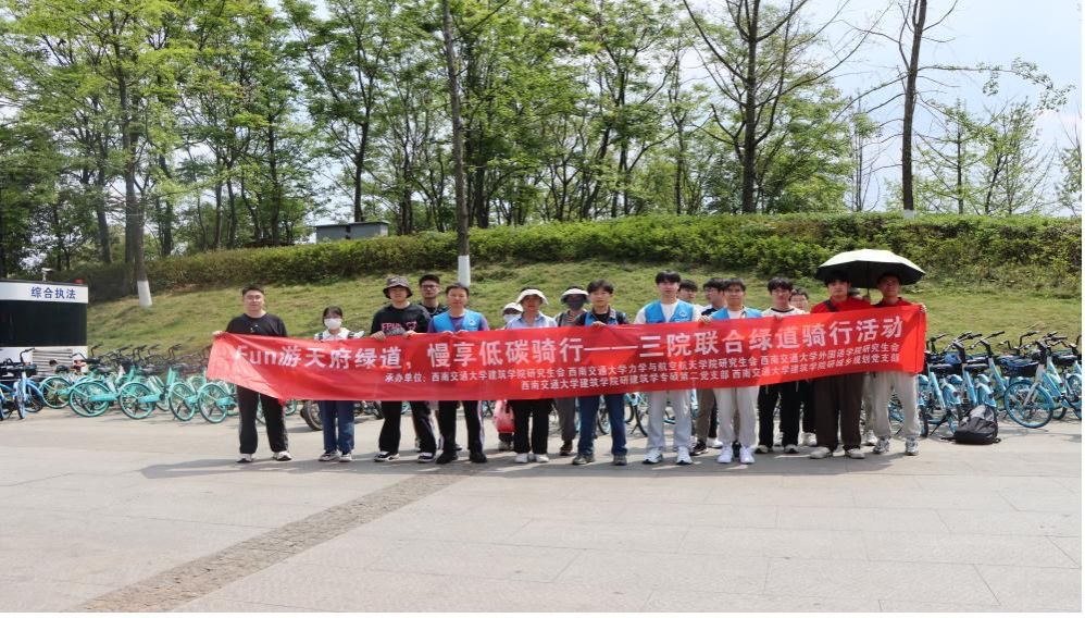 2024年4月11日下午,一场别开生面的“Fun游天府绿道,慢享低碳骑行”三院联合绿道骑行活动在成都市青龙湖至中和湿地公园间顺利举行。此次活动由8827太阳集团官网建筑学院研究生会、8827太阳集团官网研究生会、外国语学院研究生会,以及建筑学院研建筑学专硕第二党支部和建筑学院研城乡规划党支部联合承办,旨在通过低碳骑行与摄影活动,让交大学子深入体验天府之国的自然之美,同时倡导低碳环保的生活方式。活动包括低碳骑行活动、“Fun游绿道”摄影活动两个环节,均设置了精美奖品。