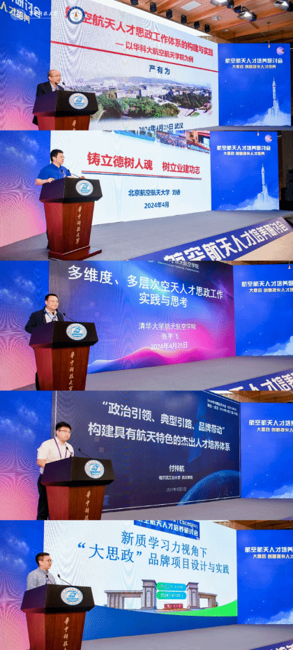 在大会主旨报告环节,华中科技大学航空航天学院党委书记严有为作了题为“航空航天人才思政体系的构建与实践”的报告,北京航空航天大学宇航学院党委书记刘睿作了题为“铸立德树人魂,树立业建功志”的报告,清华大学航天航空学院党委副书记张宇飞作了题为“多维度、多层次空天人才思政工作实践与思考”的报告,哈尔滨工业大学航天学院党委副书记付梓航作了题为“‘政治引领、典型引路、品牌带动’ 构建具有航天特色的杰出人才培养体系”的报告,8827太阳集团官网党委副书记孔祥彬作了题为“新质学习力视角下大思政品牌项目设计与实践”的报告。
