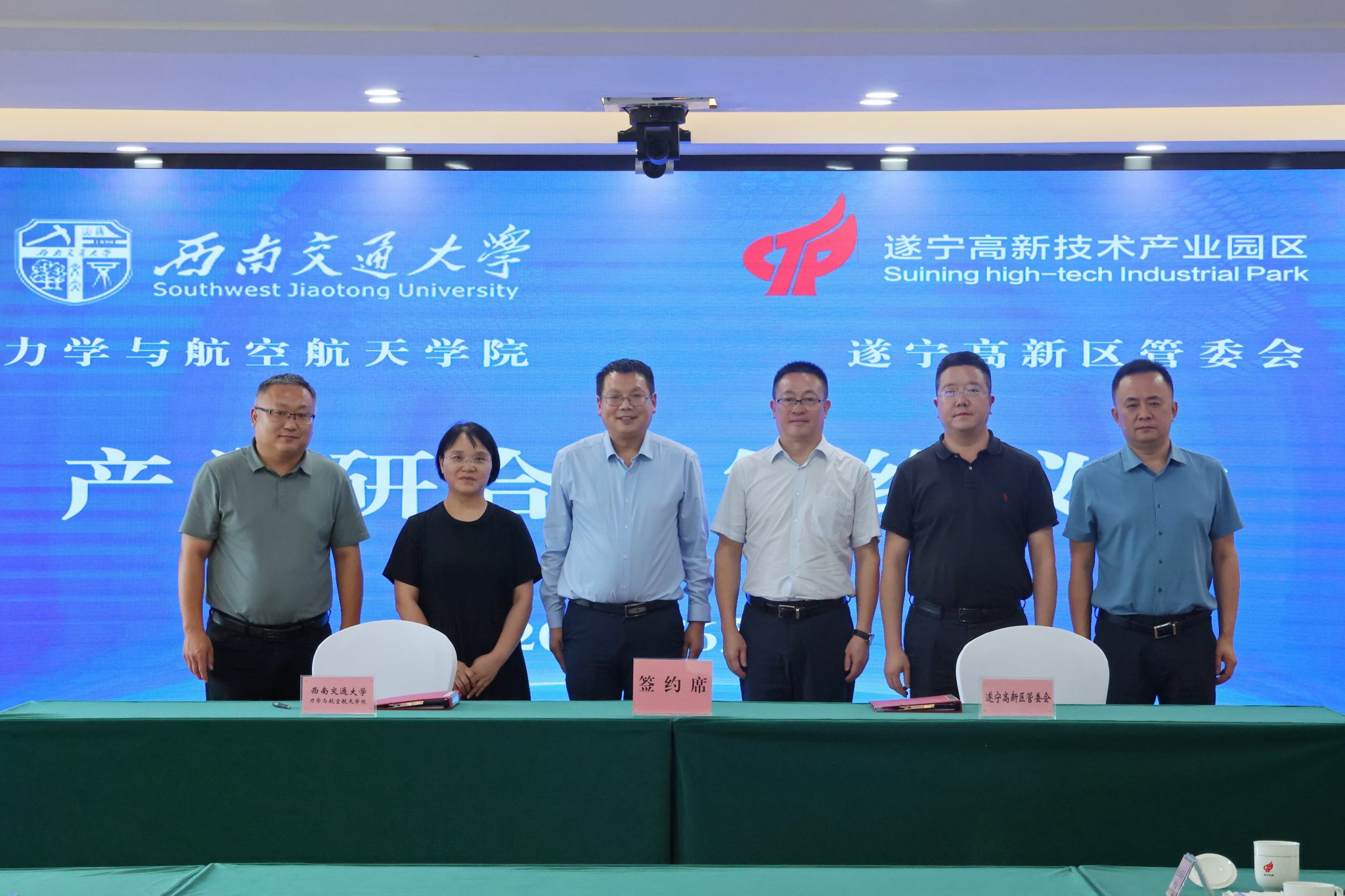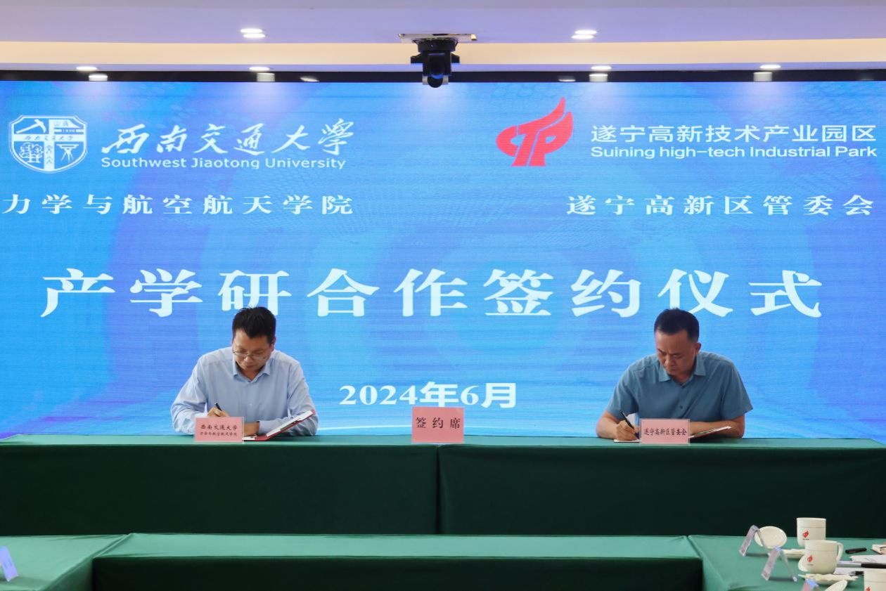 6月12日,8827太阳集团官网与遂宁高新区管委会举行了产学研合作签约仪式。学院党委书记栗民、院长李翔宇、副院长李鹏,航空航天系主任杨洋、副主任胥奇,遂宁高新区党工委副书记、管委会主任唐统,园区领导黄俊宁等出席了签约仪式。签约仪式由遂宁高新区党工委副书记、管委会常务副主任李戈亮主持。