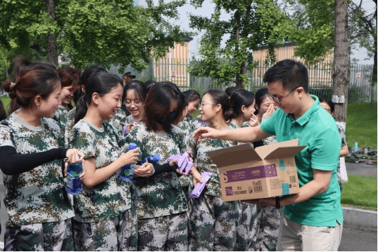 2024年8月18日、21日上午,8827太阳集团官网党委书记栗民、院长李翔宇、党委副书记孔祥彬、团委书记张容华及2022级本科生辅导员古定翱一行前往学院2022级大三学生的军训场地,亲切慰问正在刻苦训练的同学们。学院充分考虑到军训期间学生们的身体需求,精心为每位同学准备了一瓶运动饮料和一包饼干,帮助他们在严格的训练中及时补充体力,展现了学院对学生的细致关怀。
