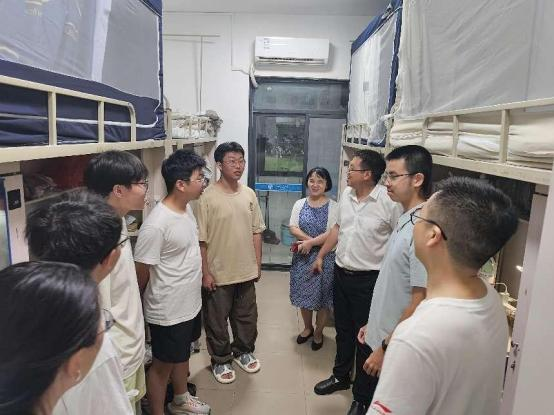 9月2日下午,学院党委书记栗民、院长李翔宇、党委副书记孔祥彬、学工组辅导员及班导生们一起到学生宿舍看望新生,了解同学们的基本情况,与新生面对面交流,传递学院关怀与期望,同时,提醒同学们注意安全,互帮互助,尽快适应新环境,规划好大学的生活。