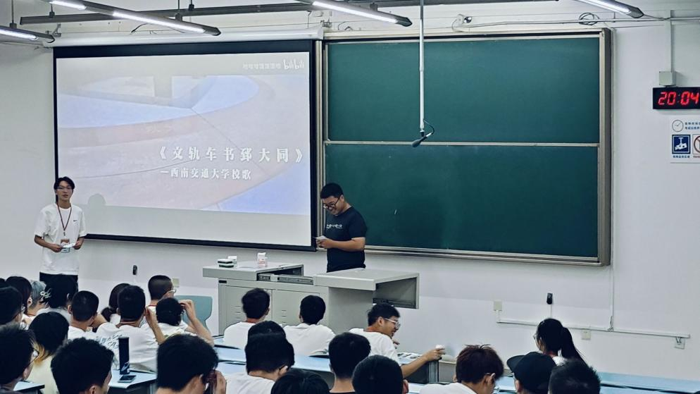 8月30日晚,学院青年志愿者协会在X2218教室组织学生学唱校歌,带领全体本科新生们用歌声领略了西南交大的悠久历史,传承和发扬“竢实扬华,自强不息”的交大精神。
