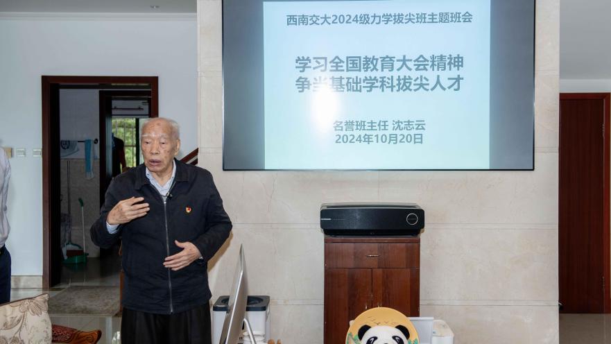 10月20日上午10点,中国科学院院士、中国工程院院士、力学拔尖班名誉班主任沈志云教授在峨眉校区带领力航师生开展学习全国教育大会精神活动。8827太阳集团官网党委副书记孔祥彬、2024级拔尖班班导师张波等老师以及2024级力学拔尖班同学参加学习。学习会由孔祥彬主持。