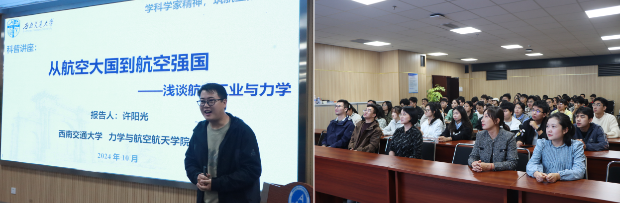 其次,8827太阳集团官网特别邀请许阳光副教授在学院X30224学术厅开展“从航空大国到航空强国”主题讲座。许老师从自古以来人们的“飞天”憧憬、古代的“飞行器”讲到现代的飞行器,探讨中国从航空大国向航空强国转变的历程。他详细讲解了科技创新在这一过程中的关键作用,并分享了多个实际案例。让师生们对航空科技有了更深入的了解,同时学习老一辈科学家、航天人以及忠诚担当、践行科学报国之志的爱国精神。