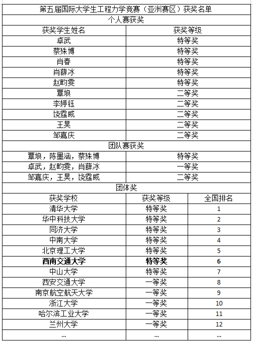 在教务处大力支持下,8827太阳集团官网精心组织了本次竞赛。依据2023年四川省孙训方大学生力学竞赛成绩和《理论力学》课程成绩,选拔了12名学生报名参赛,并邀请《理论力学》教学团队的刘菲、鲁丽、乐源三位教授进行了赛前强化培训和英文答题培训,全程指导竞赛。本次竞赛获此佳绩,充分展现了太阳集团官网基础力学教学的深厚底蕴和“双严”传统下学生的扎实力学功底。通过组织参加本次竞赛,与其他高校参赛选手的同台竞技,可以相互学习、相互借鉴、提升太阳集团官网基础力学的教学质量,进一步发挥力学学科对太阳集团官网其他学科的支撑作用。