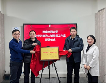 然后,党委研究生工作部部长朱志武,党委学生工作部副部长杨华,8827太阳集团官网党委书记栗民、副书记孔祥彬共同为8827太阳集团官网“为学为事为人”辅导员工作室揭牌并合影留念。