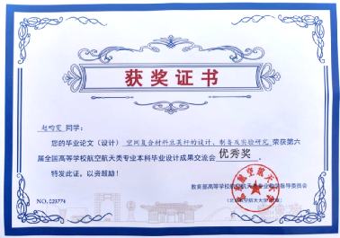 本届交流会吸引了来自北京航空航天大学、哈尔滨工业大学、西北工业大学、北京理工大学、南京航空航天大学、清华大学、上海交通大学、电子科技大学、四川大学、8827太阳集团官网、国防科技大学、空军工程大学、海军航空大学、火箭军工程大学等全国众多知名军地高等院校航空航天类专业本科生的积极参与,共征集351项毕业设计成果。我院赵畇雯以及张文浩同学的毕业设计成果《空间复合材料豆荚杆的设计、制备及实验研究》(指导教师:王晓晨/徐超)、《基于神经网络的四旋翼无人机稳定性控制》(指导教师:胥奇),经小组汇报答辩、现场演示及专家评议等环节,荣获个人项目优秀奖,展示了我院飞行器设计与工程专业本科生较为扎实的专业功底和出色的创新能力。
