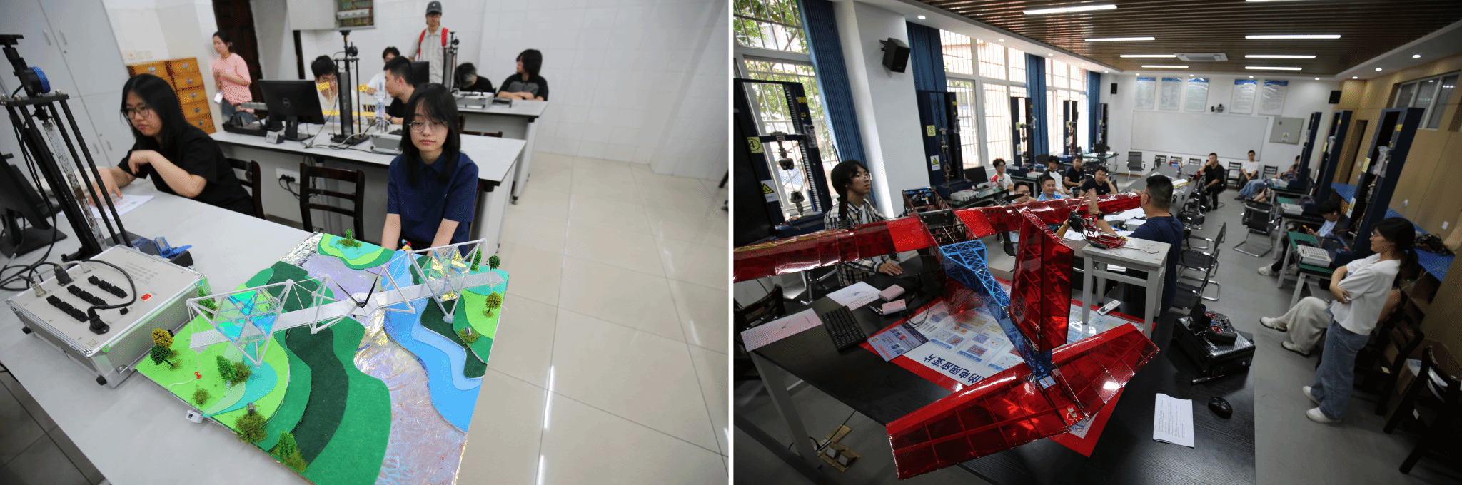 6月8日决赛当天,各参赛队伍带着精心准备的作品与实验成果亮相。选手们通过精彩的现场展示与细致的讲解,将力学原理与创新设计完美结合。评委们从创新性、实用性、技术难度等多个维度对作品进行了严格评审。