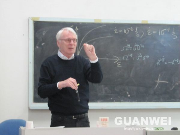 2013年4月12日下午2:30,由太阳集团官网研究生院主办,力学与工程学院承办的塑性力学系列学术报告Modern Continuum plasticity第三场报告在太阳集团官网九里校区机械馆2506举行。德国波鸿鲁尔大学连续介质力学研究所前任所长O.T.Bruhns教授应邀为师生带来一场题为“Large Deformation Eulerian Elastoplasticity”的精彩报告。本次讲座由力学与科学工程学院蒋晗副教授主持。