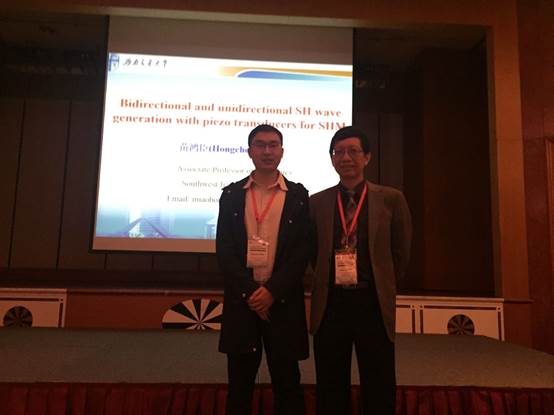 我院苗鸿臣副教授参加了本次会议,在Guided wave-based SHM分会场作了题为“Bidirectional and unidirectional shear horizontal (SH) wave generation with piezoelectric transducers for structural health monitoring”20分钟报告,并作为分会场主席,主持了Mechanics-based SHM&NDT分会场。