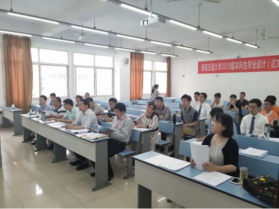 图1 答辩委员会成员认真听取抽样答辩学生的报告