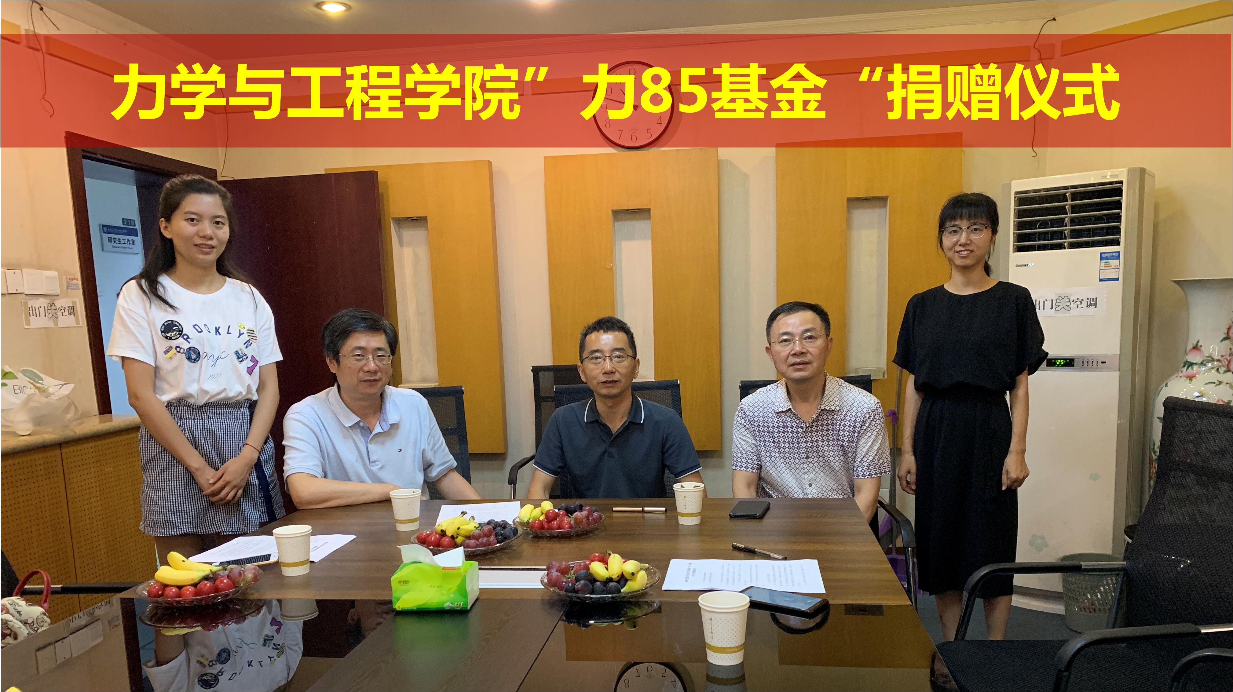 201979日,学院85基金捐赠仪式在九里校区1号综合楼222会议室举行。出席本次会议的有85级工程力学专业校友代表赵朝前、力学与工程学院院长康国政、副院长高芳清以及学院学工组全体老师们。