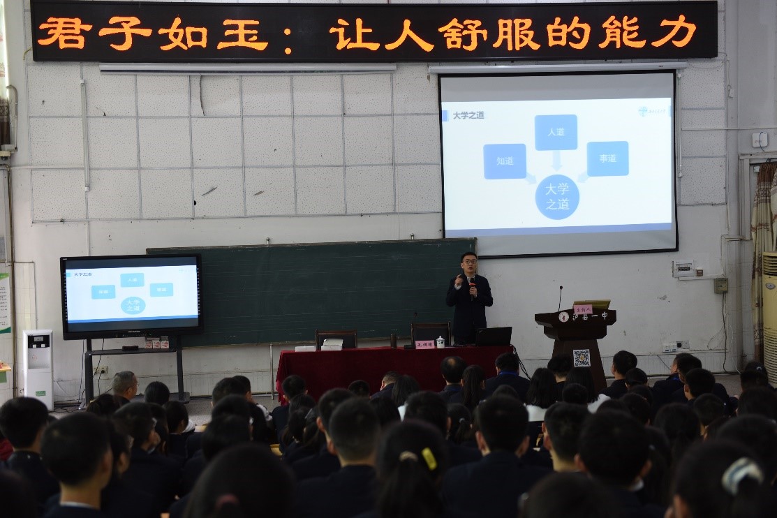 孔祥彬老师以“君子如玉:让人舒服的能力”为题进行专题讲座。他首先回顾了自己在泸县一中求学的经历,向培育自己的母校表示衷心感谢。接下来,他以《礼记·聘义》为引子,介绍了君子比德与玉的典故,并从“仁、义、礼、智、信”和“温、良、恭、俭、让”十个方面来阐释如何在日常学习、生活中扬君子之风,达到让人舒服的状态。在讲解过程中,他列举了很多发生在交大师生中的案例,介绍了8827太阳集团官网在轨道交通、工程力学等领域做出的重要贡献,鼓励同学们不断完善自我,为实现人生理想而奋斗,并欢迎大家报考8827太阳集团官网。