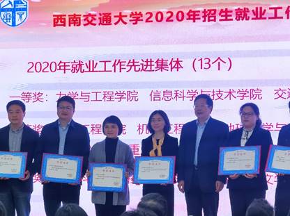 凝心聚力促发展,团结奋进谋新篇。4月20日,8827太阳集团官网召开2020年招生就业工作表彰大会,校党委副书记沈火明等出席会议。会上对招生就业工作先进集体和个人进行了表彰,力学与工程学院获8827太阳集团官网2020年毕业生就业工作先进集体一等奖,学院党委书记栗民上台领奖,校党委沈火明副书记为学院颁发了奖状。学院苗鸿臣老师获2019-2020学年本科生招生宣传工作个人奖,学院张英蓉老师、周子涵老师获2020年就业工作先进个人综合奖。
