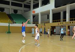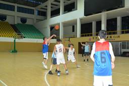 当天晚上八点,篮球赛在大家的欢呼声中拉开了序幕。比赛一开始,老师队获得进攻球权,朱志武老师快速将球运往底角三分线处将球传给康国政老师,在孔祥彬老师的挡拆下,康国政老师当即跳投,只见篮球在空中画出一道美丽的曲线并且空心命中篮筐,全场响起了阵阵掌声。随后,毕业生队不甘示弱,在相互配合的情况下,5号球员万俊豪命中超远距离三分,全场气氛达到高潮。比赛气氛紧张且激烈,上半场双方打得有来有回,比分分差一直保持4分以内。上半场后段,于超老师凭借强大的身体素质在内线屡次得分,毕业生队立即展开反攻,随着毕业生队15号汤毓宁抛投命中,上半场以48比48结束。