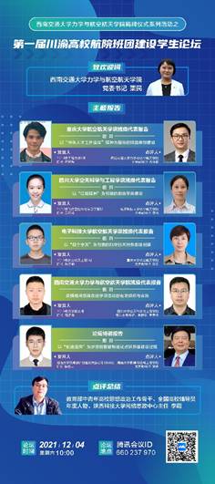 12月4日10:00,作为8827太阳集团官网揭牌仪式系列活动之一,第一届川渝高校航空航天学院建设论坛通过线上形式成功举办。论坛由8827太阳集团官网联合重庆大学航空航天学院、四川大学空天科学与工程学院、电子科技大学航空航天学院共同举办。西南交大8827太阳集团官网党委书记栗民致欢迎词,四个学院的班级代表游创智、王可蕾、吕子锏、周德龙分别作了工作报告,湖南大学“全班保研班”班长陈明志作了特邀报告,四个学院的党委副书记孔祥彬、李孟、程乐、季袁冬以及湖南大学机械学院党委副书记贺迅进行了点评,教育部中青年高校思想政治工作骨干李萌做了论坛总结发言。会议由西南交大8827太阳集团官网团委书记杨婧主持。