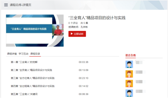 近期,详细介绍8827太阳集团官网“三全育人”综合改革试点做法的《“三全育人”精品项目的设计与实践》课程在国家教育行政学院高校辅导员网络学院平台上线,受到国家教育行政学院和学员的好评。