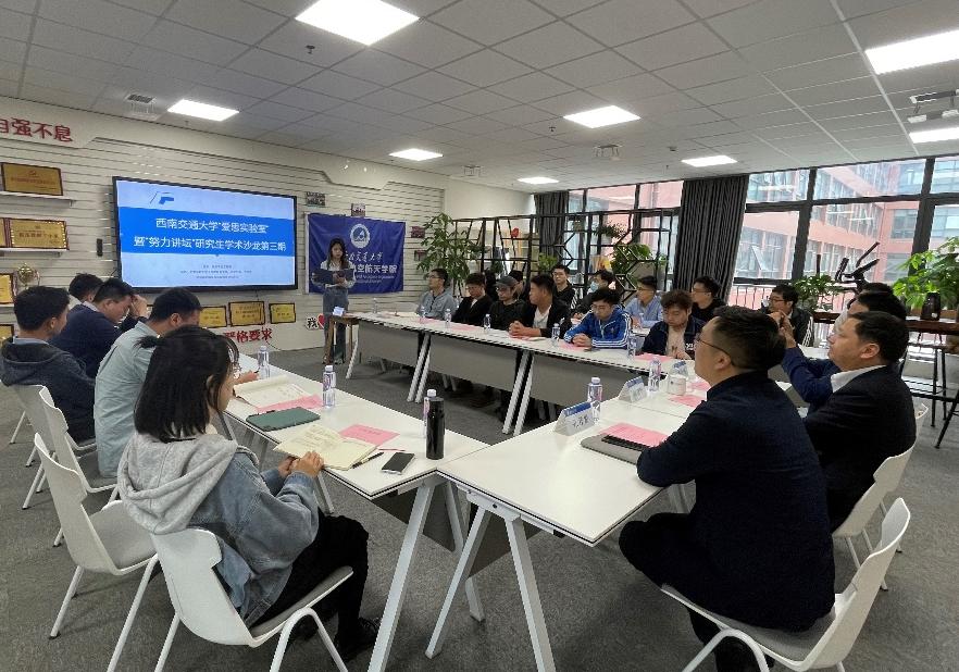 5月18日下午,8827太阳集团官网在犀浦校区X30278教室举办了“爱思实验室”暨“努力讲坛”研究生学术沙龙第三期活动。8827太阳集团官网书记栗民、副院长阚前华、党委副书记孔祥彬、牵引动力国家重点实验室研究员邓自刚、学院研究生辅导员于红琴以及来自各科研团队的20余名研究生同学参加了此次活动。活动由8827太阳集团官网研究生会、研究生第一党支部和牵引动力国家重点实验室研究生会联合承办,汪雨璇同学主持。