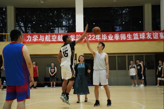 6月13日晚,8827太阳集团官网2022年毕业季师生篮球友谊赛在詹天佑体育馆如期举行。由康国政、李翔宇、朱志武、孔祥彬、范晨光、于超、杨洋等老师组成的教师队伍对阵由2022届毕业生邓涛、白浩然、李曦宇、谢尧、郭炎明、李声涵、刘文浩、郑鑫、向泓宇组成的学生队伍,由研究生刘龙波担任主裁判。学院党委书记栗民莅临现场为老师和同学们加油喝彩。