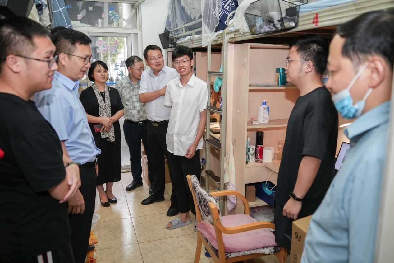 6月17日晚19:00,8827太阳集团官网党委书记栗民、执行院长李翔宇一行走访了学院毕业生宿舍。学院副院长高芳清、副院长阚前华、党委副书记孔祥彬、团委书记杨婧、本科毕业年级辅导员田甜一起参加了走访。