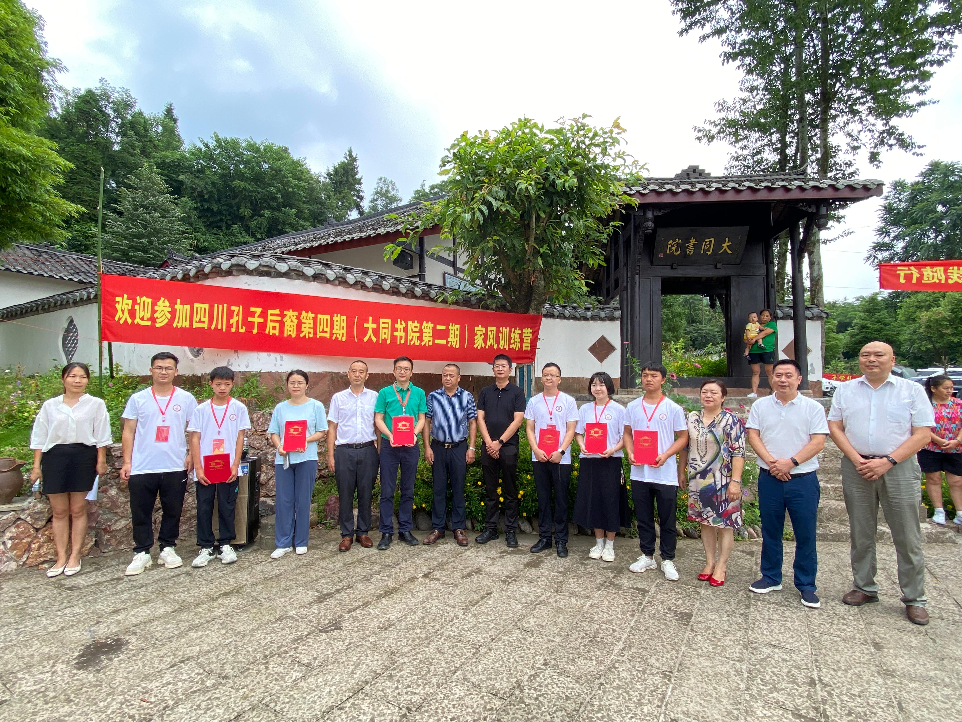 7月15日上午,由邛崃市大同镇主办的四川孔子后裔第四期(大同书院第二期)家风训练营在孔家山村开营。参加训练营的孩子除成都地区孔子后裔外,还包括四川省各地踊跃报名的青少年。大同镇党委主要领导、儒促会副秘书长、孔家山村及大同书院负责人以及训练营师生、志愿者、家长、媒体记者等70余人参加了开营仪式。