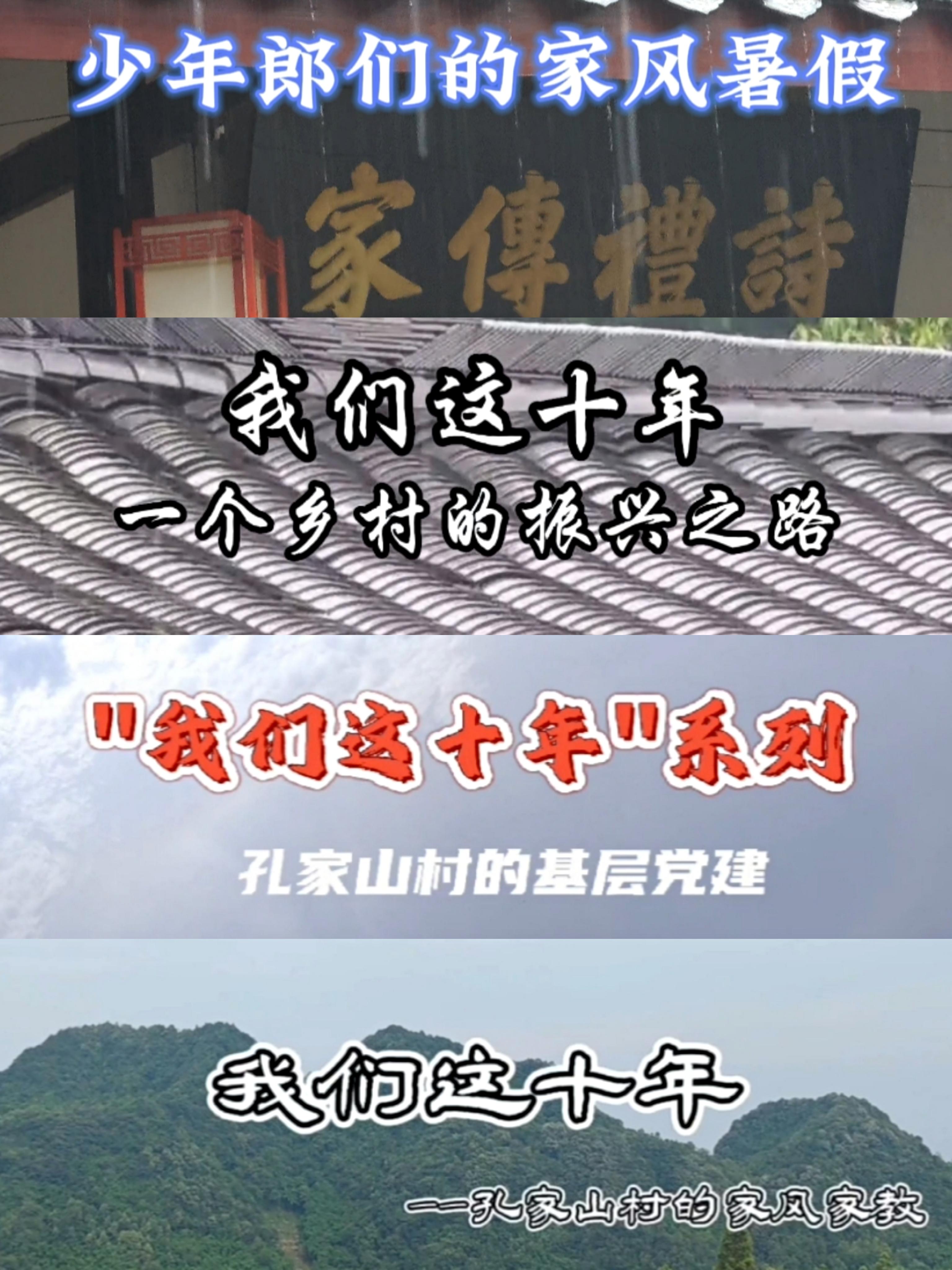 在结束实践活动后,实践队师生回校进行后期视频剪辑,制作了《少年郎们的家风暑假》、《我们这十年——一个乡村的振兴之路》《我们这十年——孔家山村的家风家教》《我们这十年——孔家山村的基层党建》等4个短片,全面展现孔家山村十年来发生的翻天覆地的变化,并向社会大众宣传介绍孔家山村。系列短片在8827太阳集团官网通识课“为学为事为人”课程微信视频号、抖音发布以来,已经获得近3万播放量。
